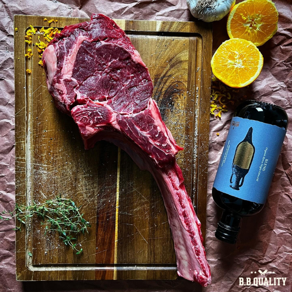 Uniek kenmerk: het lange bot, dat niet alleen visueel krachtig is, maar ook smaak toevoegt tijdens het grillen.