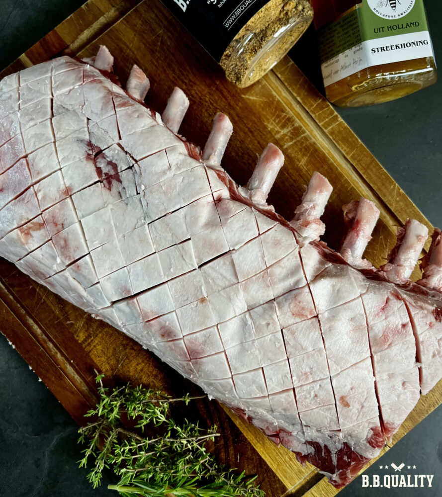Iberico Rack Wil je uitpakken tijdens een diner? Het Iberico varkensrack (de ribroast met de botjes er nog aan) is een waanzinnig pronkstuk. Geweldig om in z'n geheel indirect te garen, prachtig aan te snijden en direct op te dienen.