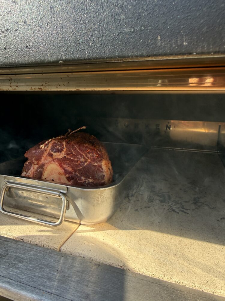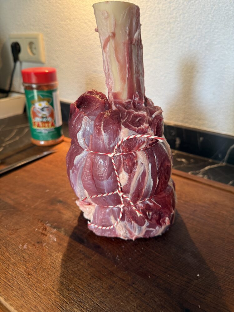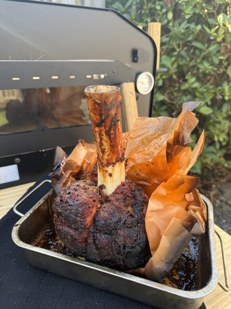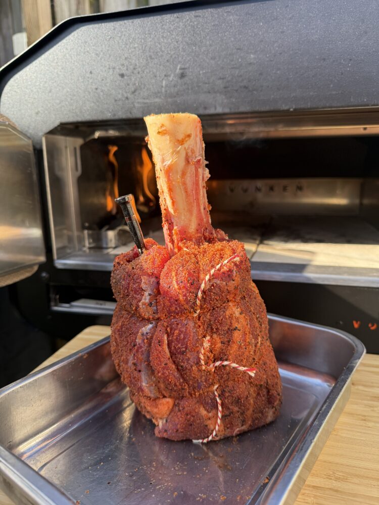 De Angus beef hammer is een indrukwekkend stuk rundvlees dat vraagt om een langzame bereiding. Daarom heb ik ‘m klaargemaakt in de Vonken oven.