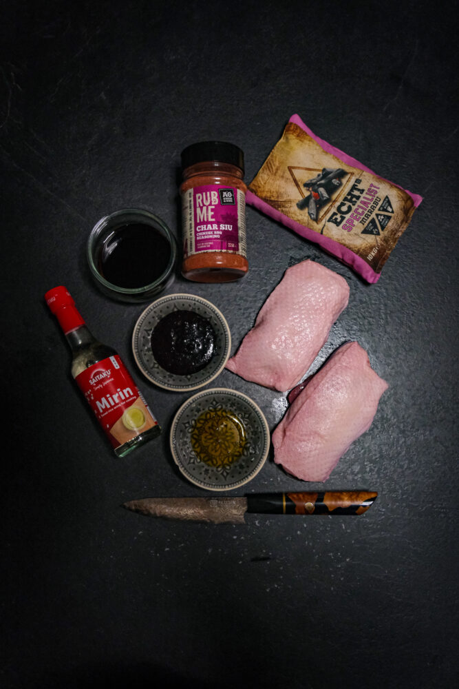 Overheerlijke eendenborst, maar dan met een heerlijke BBQ-twist. Deze eendenborst krijgt een uitgesproken Aziatisch karakter dankzij een marinade van hoisinsaus, Chinese kookwijn en char siu-kruiden. Daarna wordt hij langzaam gegaard op de barbecue tot de vetlaag mooi krokant is en de laklaag diep rood en glanzend. Het resultaat: een perfecte balans tussen zoet, zout en een vleugje rook!