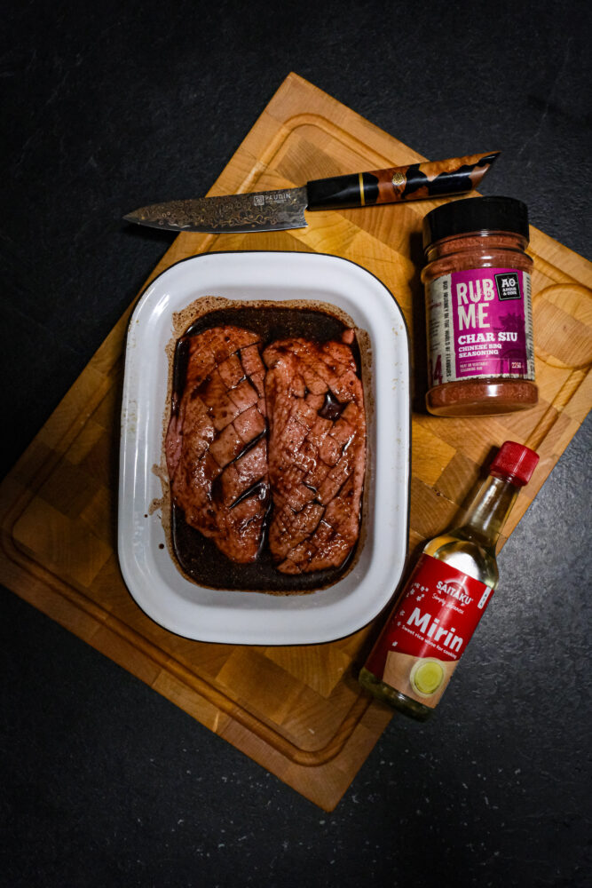 - 2 eetlepels Angus & Oink Char Siu rub