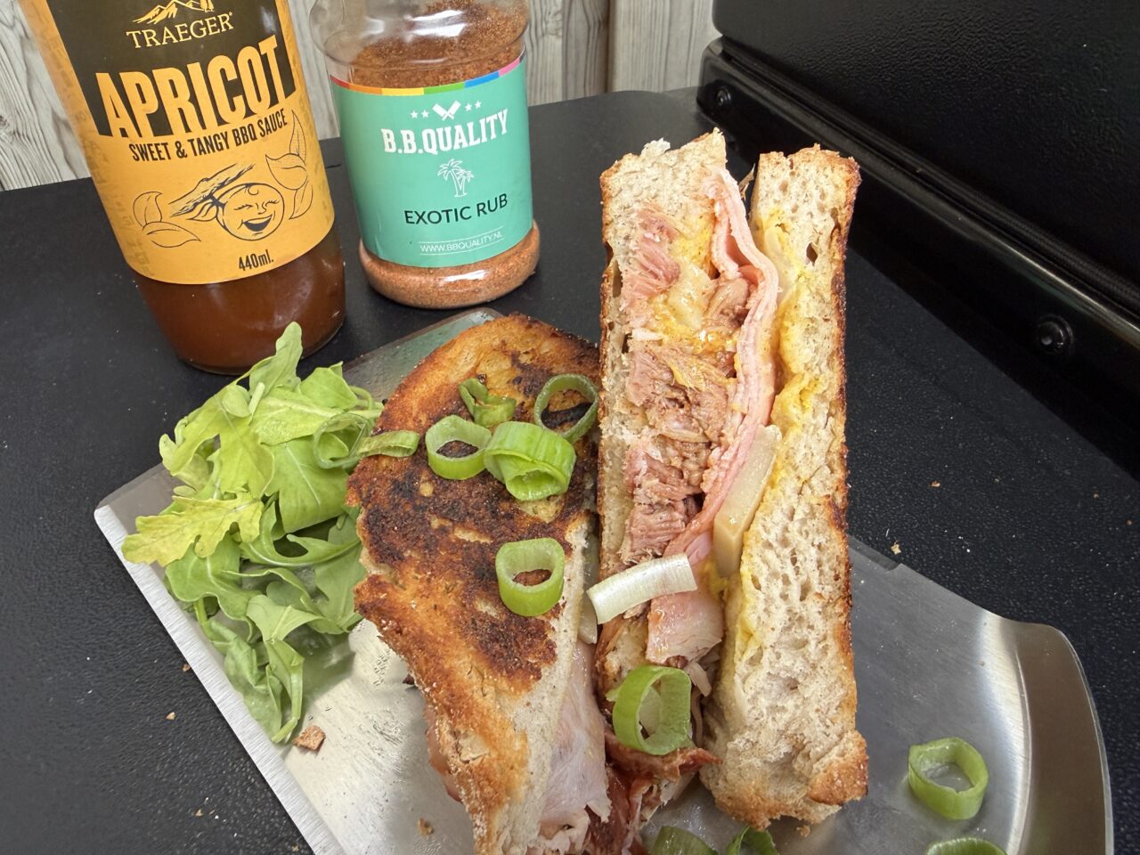 De Cubano sandwich is een heerlijke variant op de klassieke ham-kaassandwich en vindt zijn oorsprong in de Verenigde Staten, waar hij populair werd in regio’s met veel Cubaanse arbeiders. De sandwich kreeg wereldwijde bekendheid dankzij de film Chef. Voor mijn versie geef ik er een eigen twist aan: ik gebruik exotische pulled pork voor extra smaak en een tropische touch.