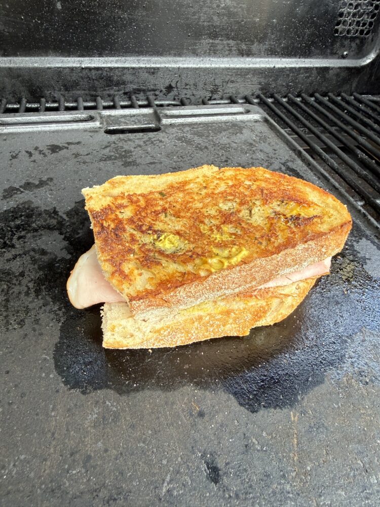 Wanneer de sandwiches mooi goudbruin zijn en de kaas perfect gesmolten is, haal je ze van de BBQ. Leg ze op een snijplank en snijd ze schuin door voor dat klassieke Cubano-uiterlijk.