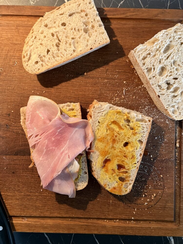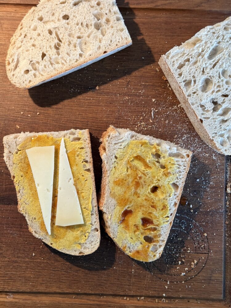 - 1 plak kaas per sandwich (ik gebruikte Manchego)