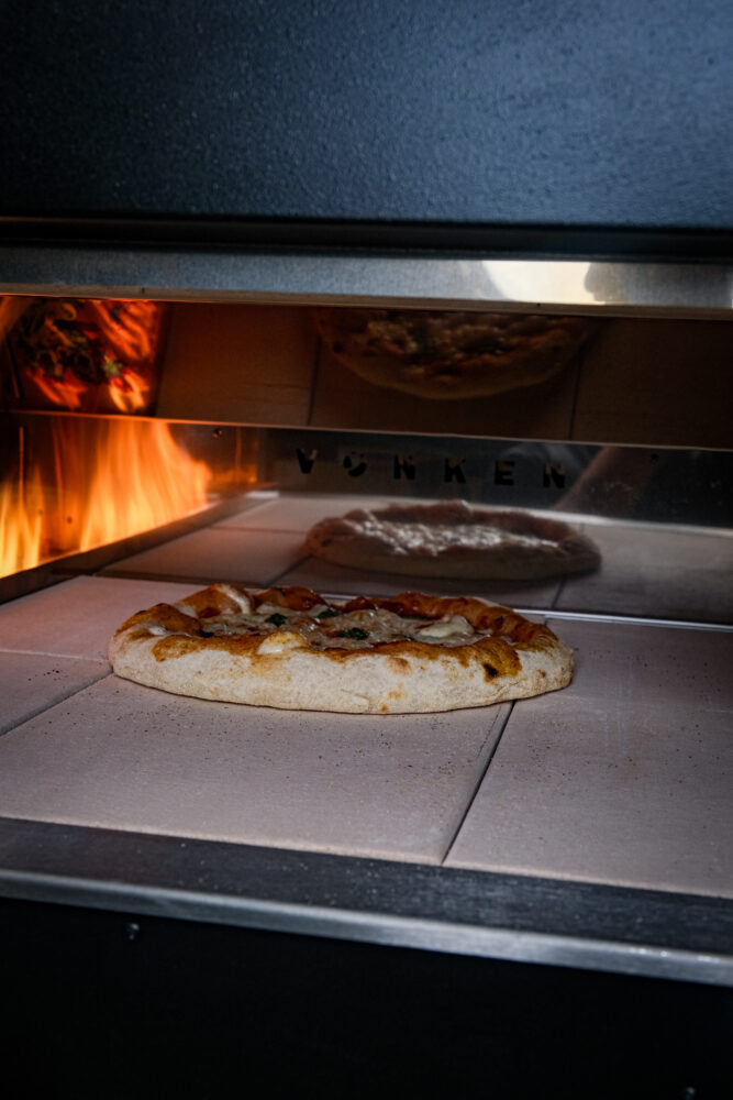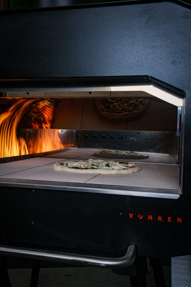 Houd de pizza goed in de gaten en draai hem indien nodig voor een gelijkmatige garing. In een pizzaoven is je pizza vaak al binnen 2 minuten klaar, terwijl een BBQ of gewone oven iets meer tijd nodig heeft.