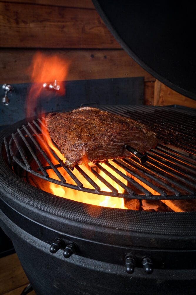 Dit gerecht laat zien hoe simpel en verfijnd perfect samen kunnen gaan. De picanha wordt eerst direct gegrild voor een krachtige vleessmaak en daarna afgewerkt met een krokante knoflookkorst van panko, pecorino romano, boter en chipotle chili. Door het vlees indirect verder te garen blijft het heerlijk sappig en krijgt de korst de tijd om knapperig en goudbruin te worden. Een vol, hartig gerecht met een lichte rokerige pit!