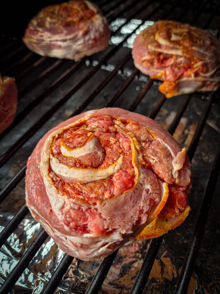 Leg vervolgens de rolletjes op de BBQ. Bij een kerntemperatuur van 65 graden Celsius bestrijk je ze met een beetje saus en laat je ze nog even liggen. Wanneer ze 70 graden Celsius bereiken, mogen ze van de barbecue af.